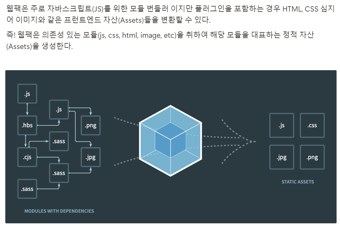 이때 모듈과 웹팩에서의 모듈의 정의는 다음과 같다.