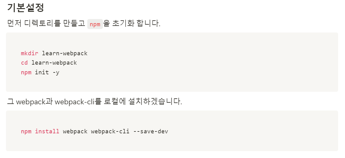 npm 초기화하고 웹팩을 설치하면 된다. (그러려면 일단 노드 js를 먼저 깔아서 npm이 깔려있어야 함.)