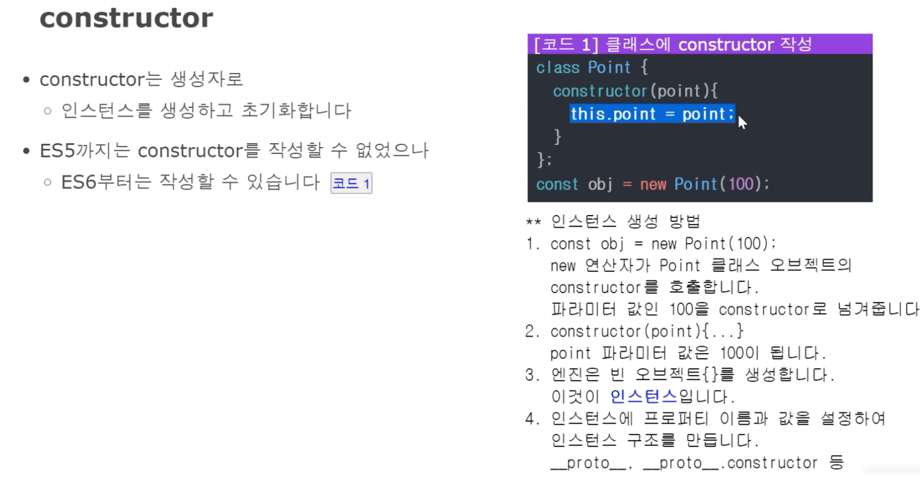 생성자는 인스턴스를 생성하고 초기화하게 만들 수 있다.