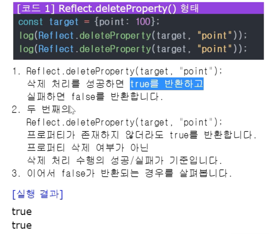 Reflect.deleteProperty() 정적 메서드는 속성을 제거할 수 있습니다.