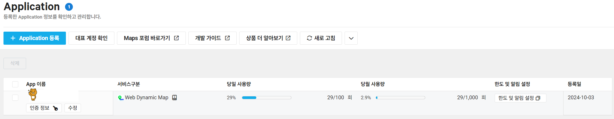 네이버 맵 API를 사용하기 위해서는 https://guide.ncloud-docs.com/docs/maps-app#Application%EB%93%B1%EB%A1%9D 해당 문서를 따라가며 Application 등록을 해주어야 한다. 등록을 완료하고 콘솔에 들어가 AI, NAVER API / App