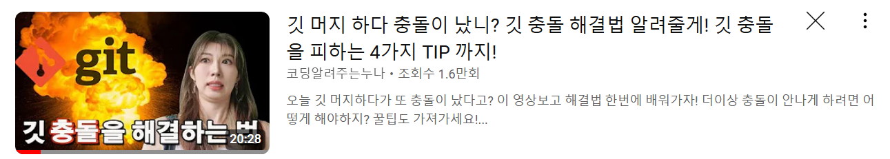 이때 깃 충돌을 어떻게 해결해야 하는지, 그리고 코드를 어떻게 짜야 깃 충돌을 피할 수 있는지 등..에 대한 영상이다.