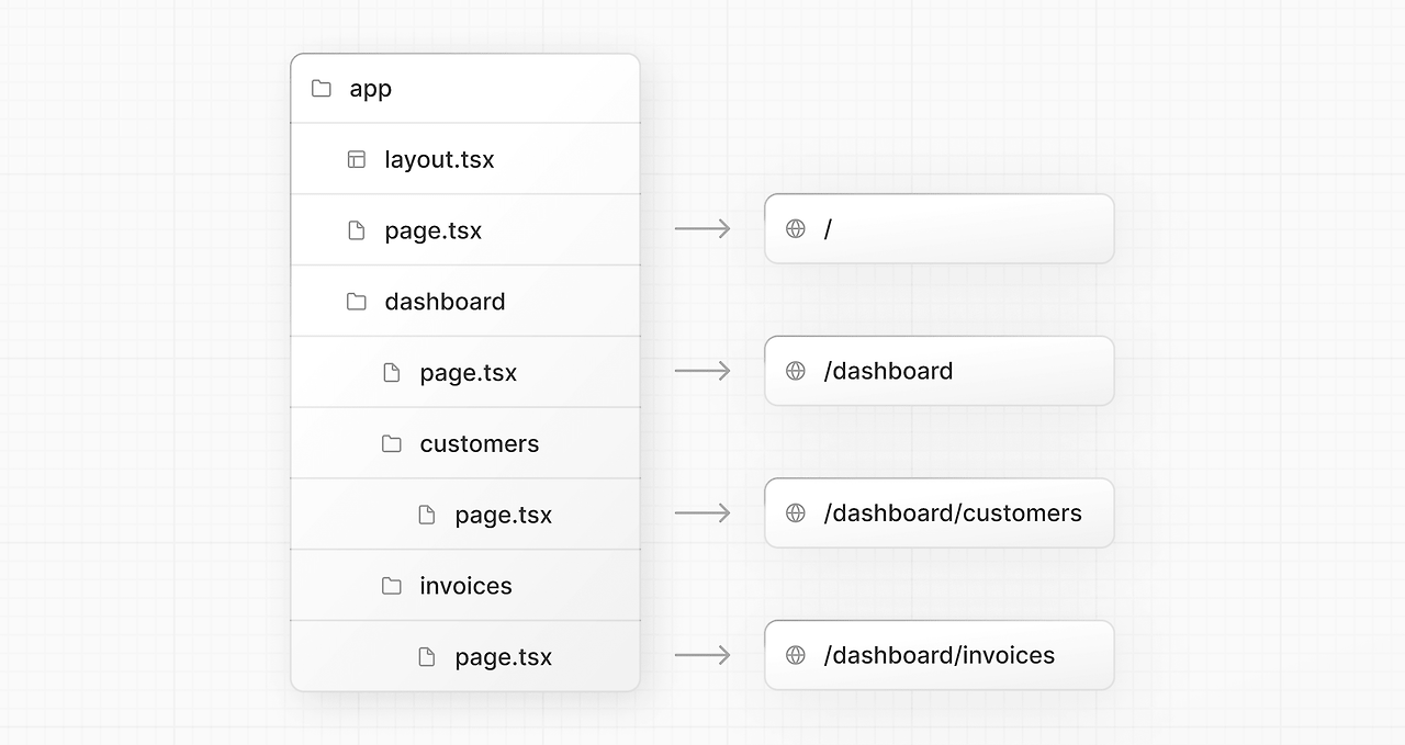 (예를 들어) app 폴더 안에 dashboard라는 폴더를 만든다. 이후 invoices라는 폴더를 만들면 "내 도메인 / dashboard / invoices" 가 라우팅 주소가 된다.