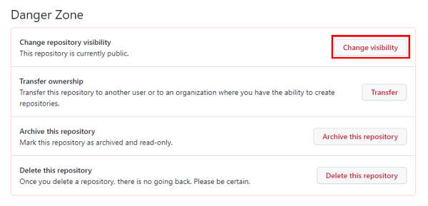 레포지토리의 전체 공개랑 프라이빗을 전환할 수 있다. (보통 시작은 퍼블릿으로 열어두긴 한다.)