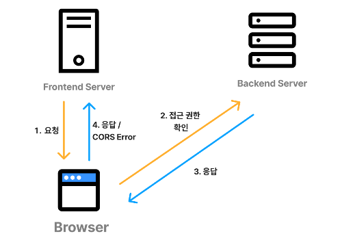 CORS 에러를 해결하는 정석적인 방법은 프론트엔드 개발자가 백엔드 개발자에게 프론트엔드 개발 서버 도메인을 허용해달라고 요청을 해야하고, 백엔드 개발자는 응답 헤더에 필요한 값들을 담