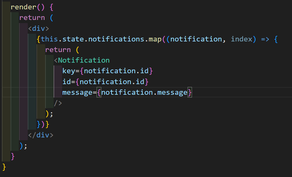원래 메시지만 있다가 id를 추가해 줬다. id로 각각의 key 값을 구별하기 위함이다. 이후 Notification 부분의 태그에 key를 추가하였다.