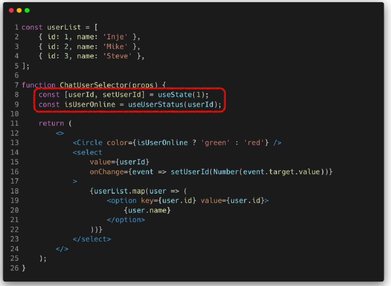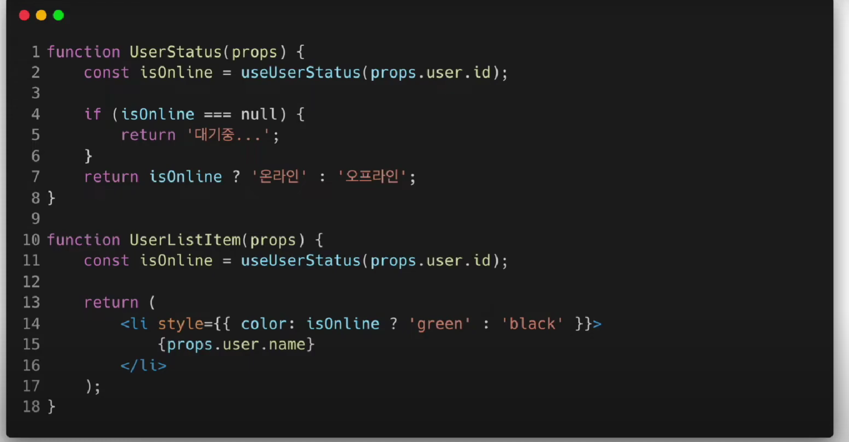 useUserStatus가 커스텀 훅이다.