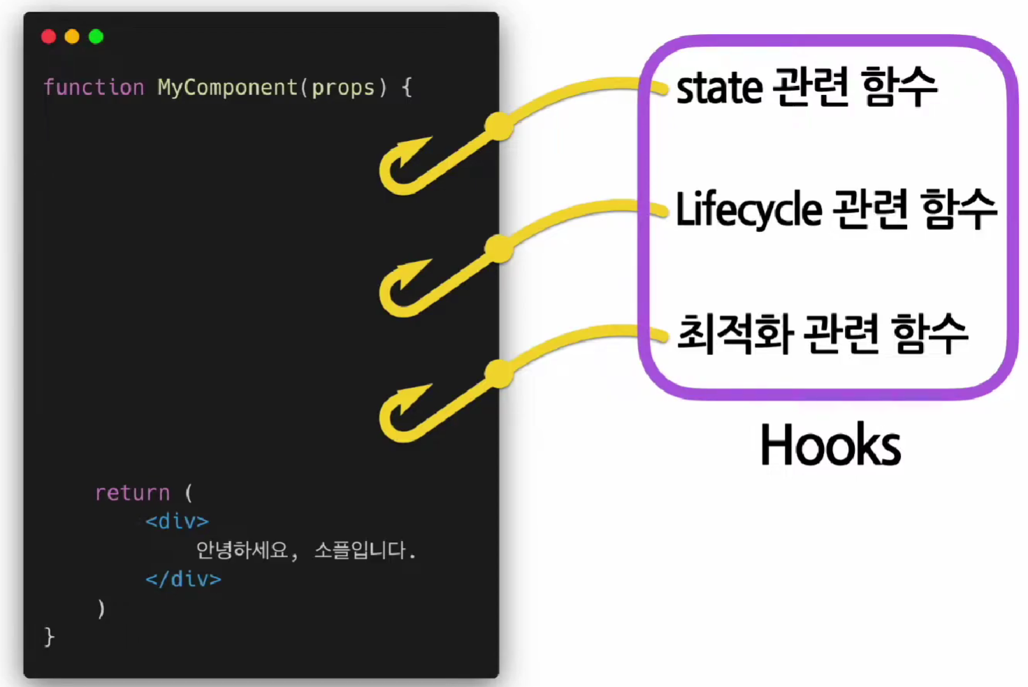 리액트가 처음 만들어질 때부터 있던 개념은 아니지만, 새로 생긴 중요 개념이라고 생각하자.