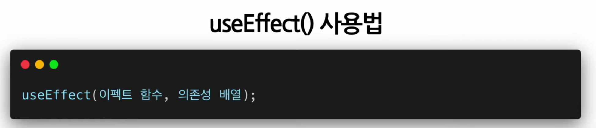 useEffect 에 대한 사용 방법 및 정의를 다음과 같이 정의할 수 있다.