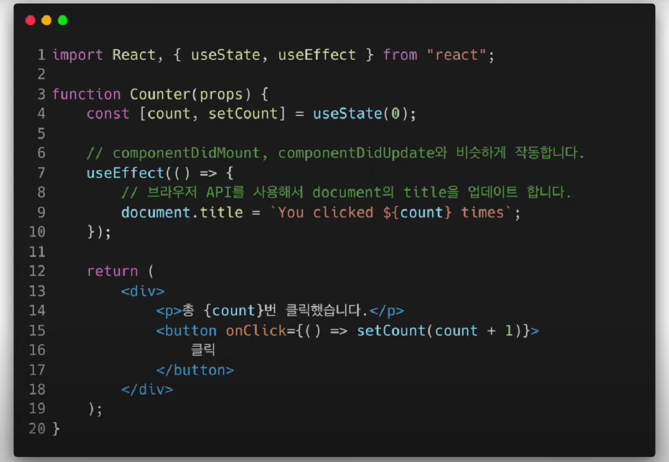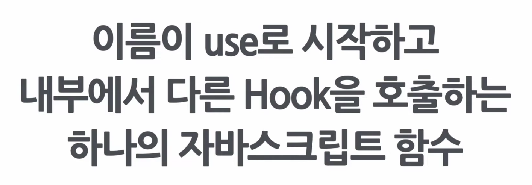 정리하자면, 훅은 함수형 컴포넌트의 단점을 상쇄하기 위한 기술이며, 훅을 보면 use로 명을 짓는다.