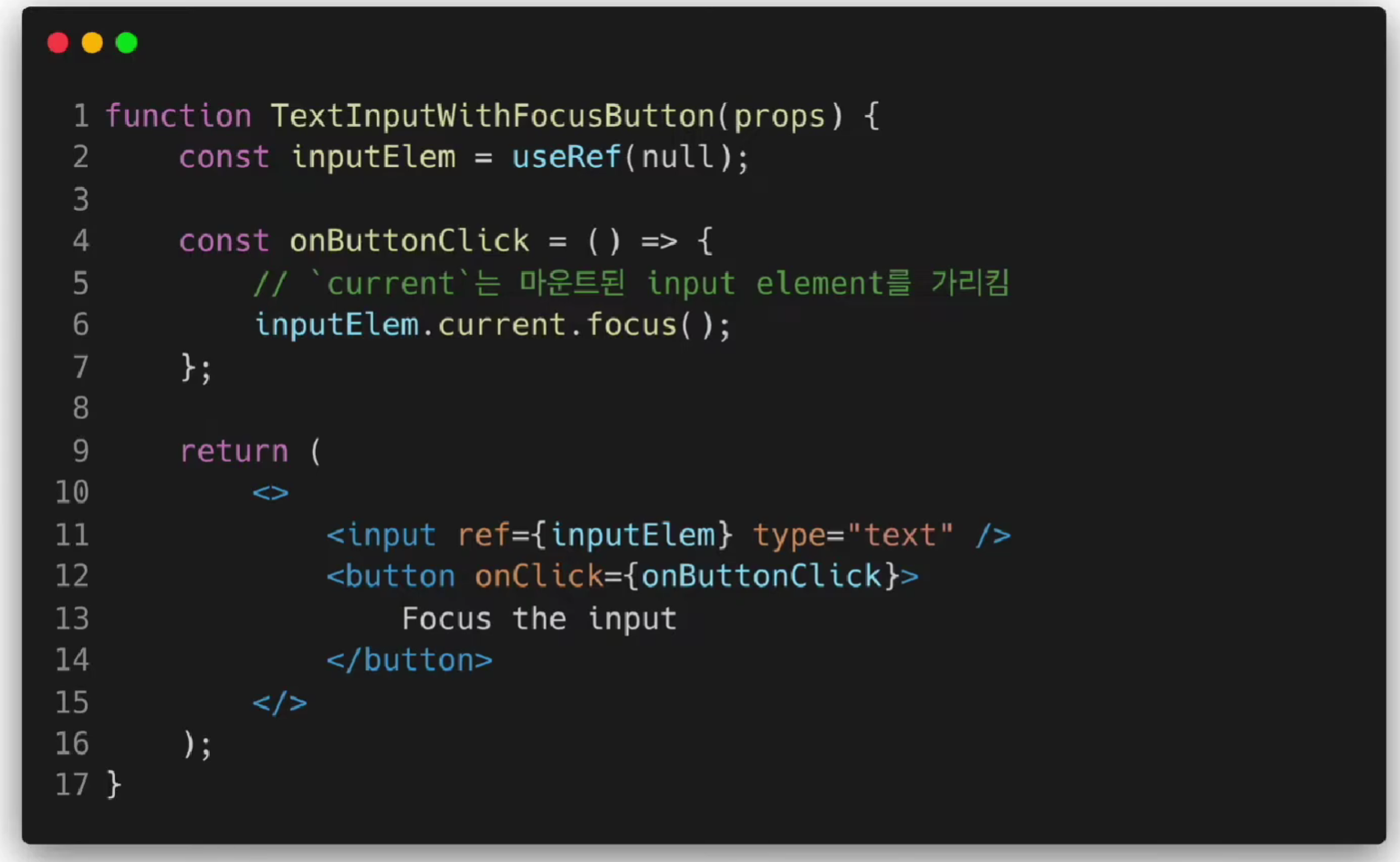 레퍼런스는 리액트에서 특정 컴포넌트에 접근할 수 있는 "객체"이다. 이 레퍼런스를 리턴한다.