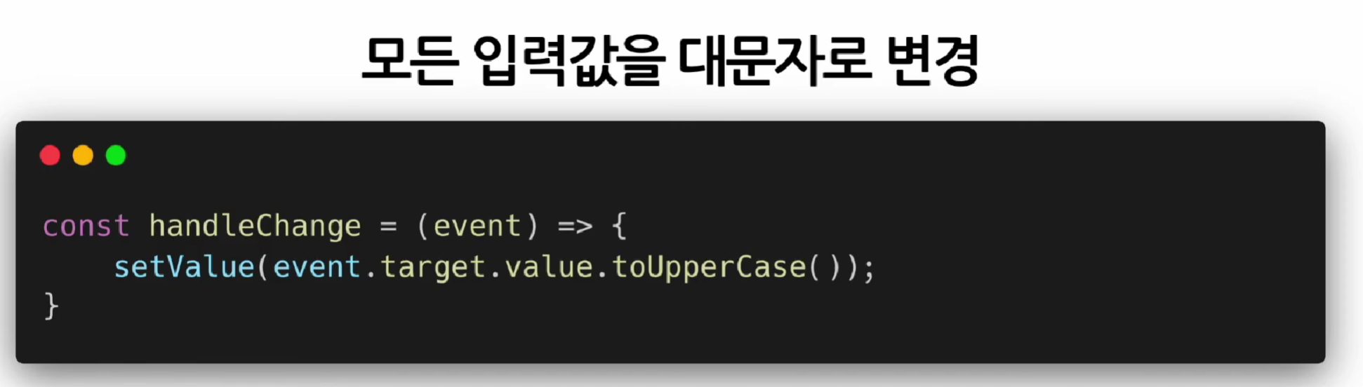 예를 들어 입력값을 대문자로 바꾸는 컴포넌트를 만들고 싶다고 치자. 그럼 다음과 같은 코드를 작성하면 된다.