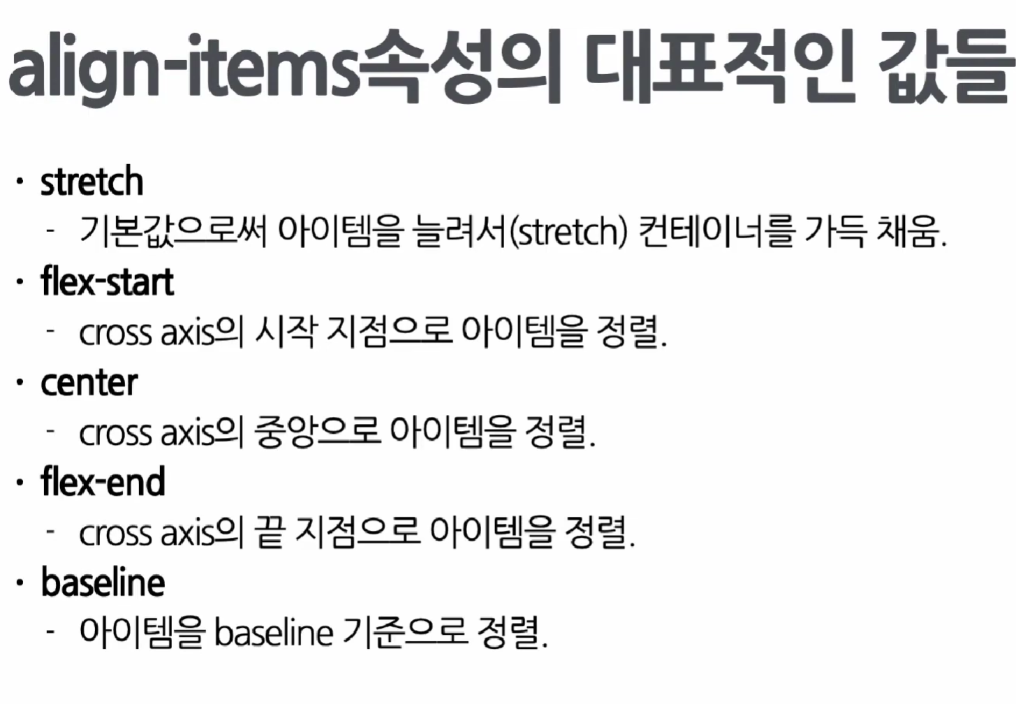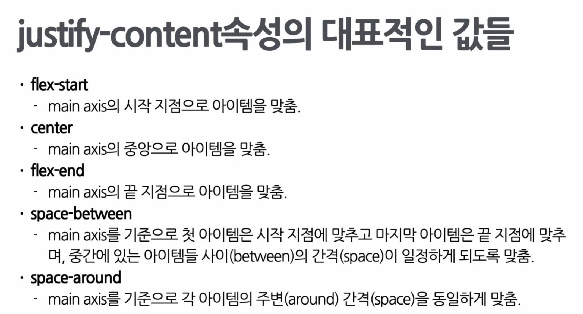 컨테이너 안에서 아이템을 어떻게 나란히 정렬할 것인지 결정하는 속성이다.