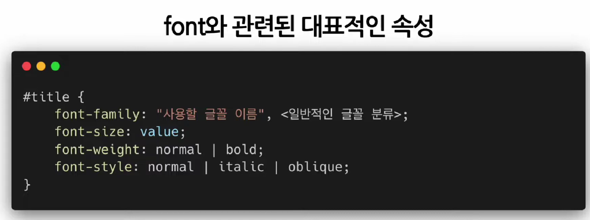 폰트와 관련된 대표적인 속성은 위와 같다.