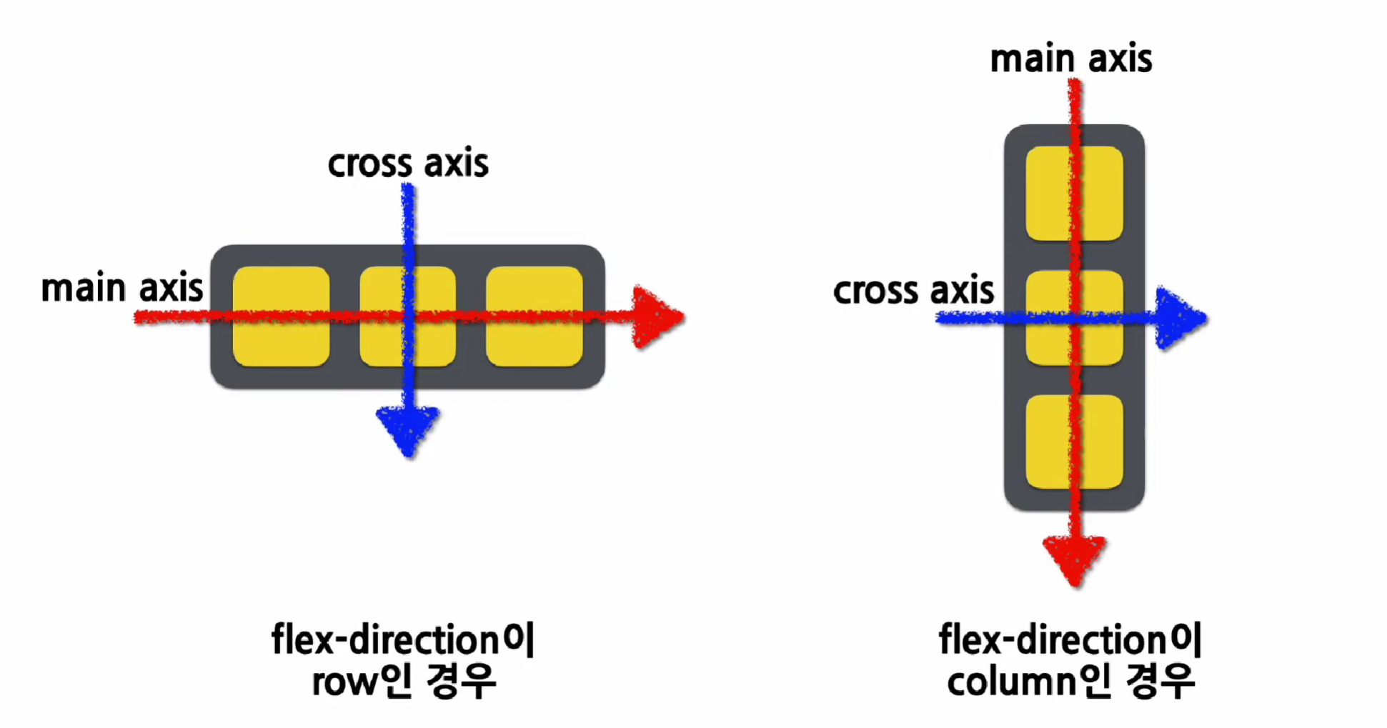 기준 축은 row 혹은 column으로 정해진다. 그림을 참고해서 정렬이 어떤 방향으로 일어나는지 확인할 수 있다. (따로 설정 안 하면 row로 설정이 된다.)