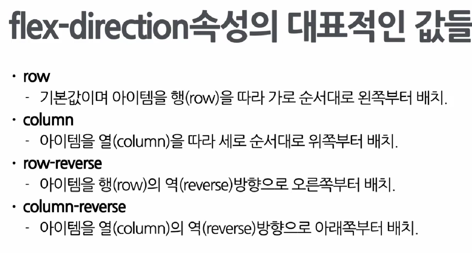 아이템을 행으로 배치할 것인지 열로 배치할 것인지 결정하는 속성이다.