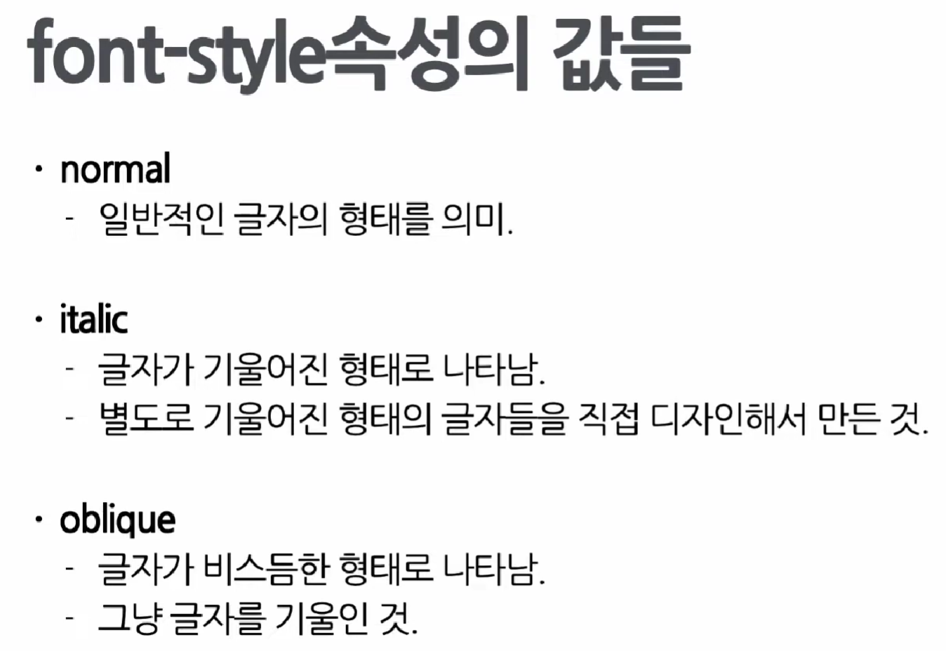 font-style은 폰트의 스타일을 바꾸는 속성이다.