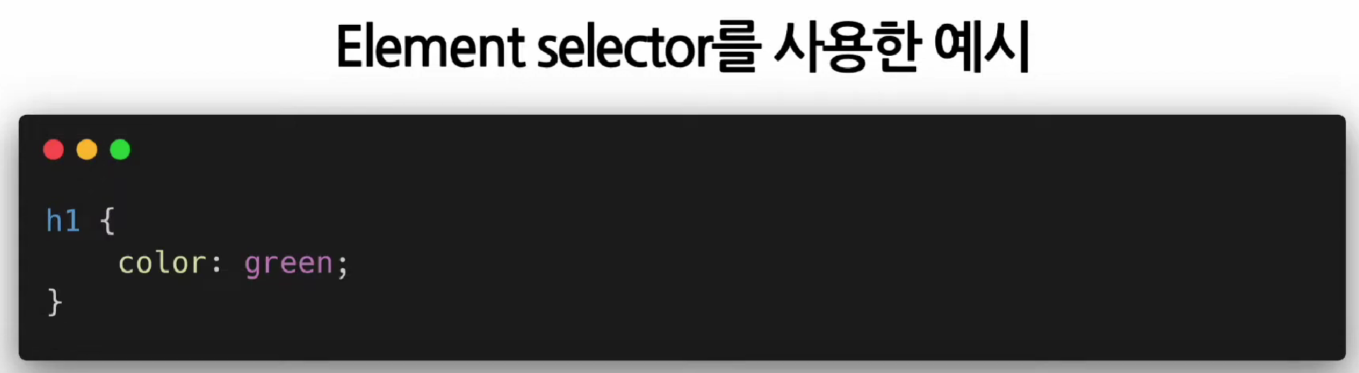 이때 엘리먼트에 CSS 규칙이 적용되는 것을 Selector라고 부른다. (선택자라는 뜻도 있다.)