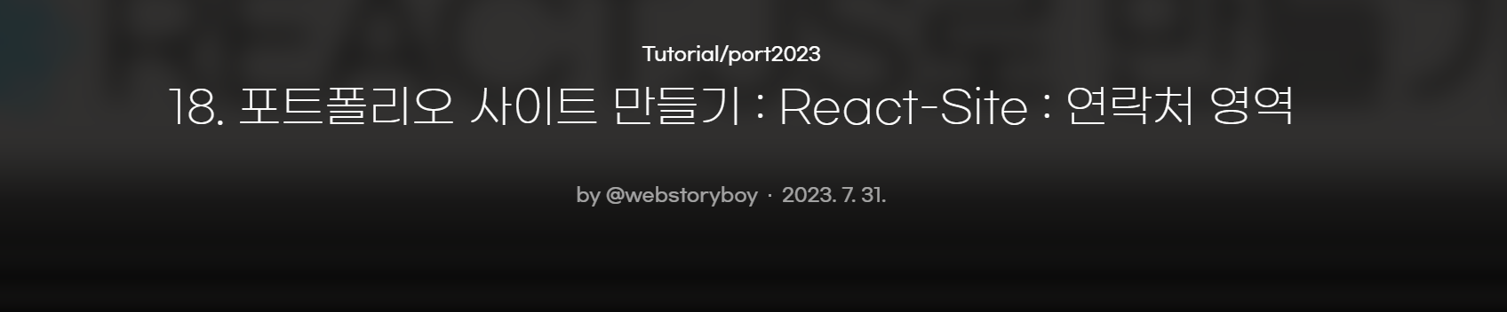 Tutorial/portfolio 포트폴리오 사이트 만들기 - React by @webs 2023. 08. 01. 08 포트폴리오 사이트 만들기 : 연락처 영역 난이도 중간 소스 다운로드 완성 화면 완성 코드 영상 보기 소개 안녕하세요! 웹스토