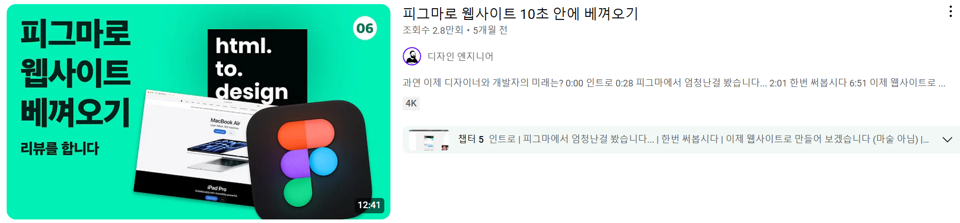 피그마에는 정말 많은 플러그인이 존재하고, 그중 html.to.design 플러그인이라는 것이 있다. 이 플러그인을 이용하면 사이트에 있는 디자인을 "그대로" 가져올 수 있고, 이를 기반으로 빠르게 웹 디자인을 만들고 수정할 수 있다. 무엇보다 이미 입증된 "디자인"이기에 더 강력하다.