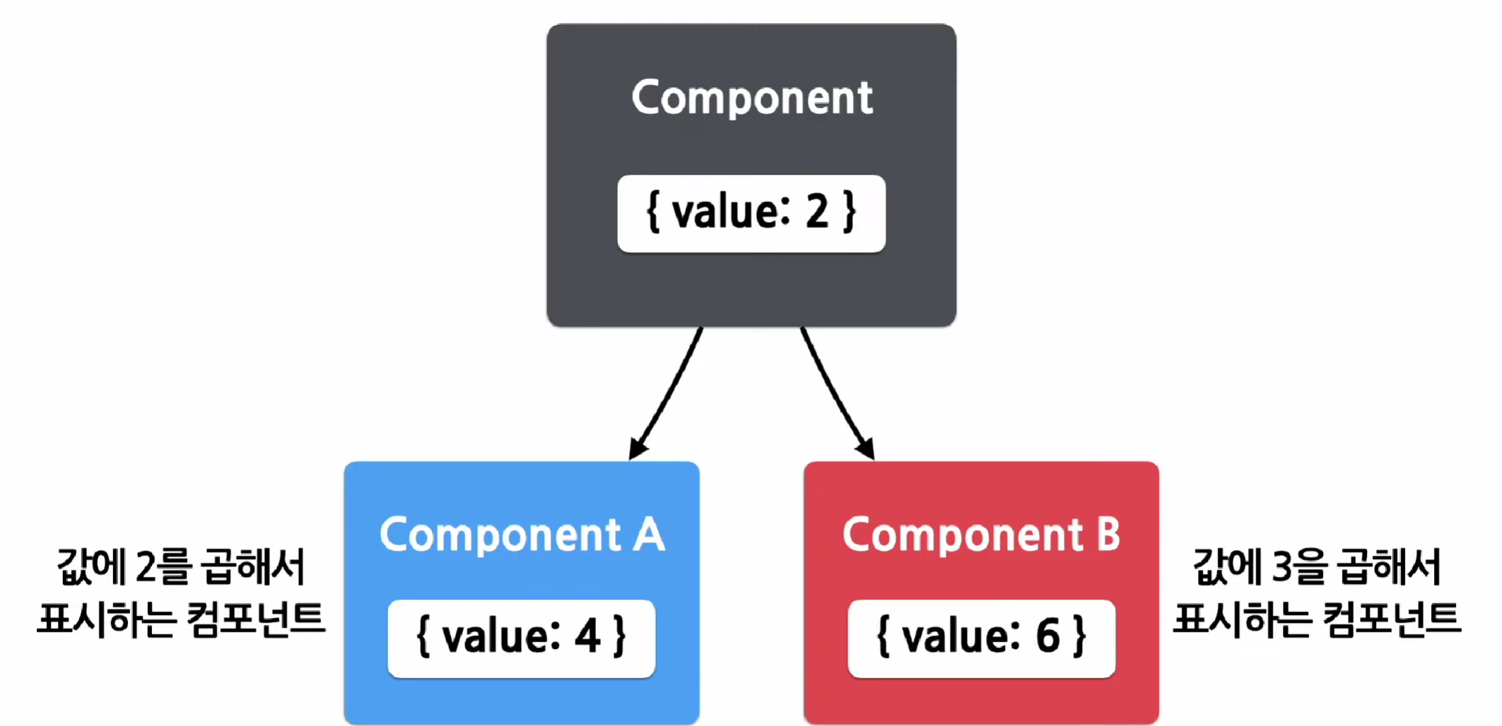 즉, 공통된 하위 컴포넌트가 상위 컴포넌트인 부모 컴포넌트의 state를 공유하여 쓴다.