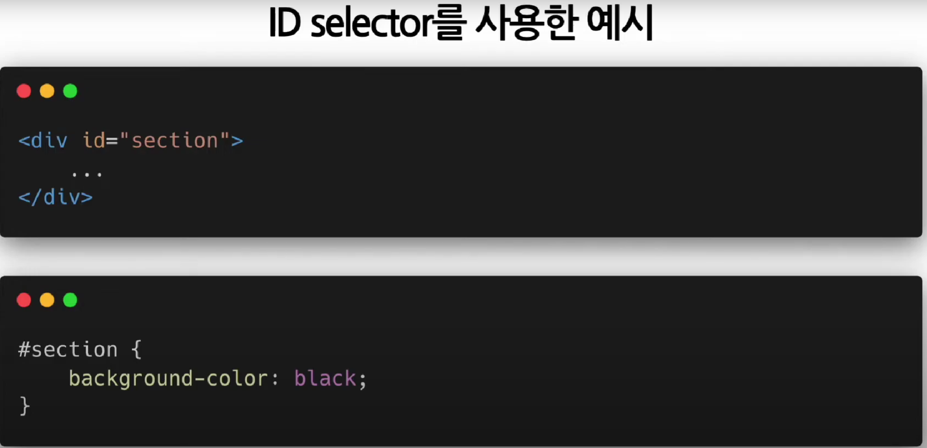 이때 엘리먼트에 CSS 규칙이 적용되는 것을 Selector라고 부른다. (선택자라는 뜻도 있다.)