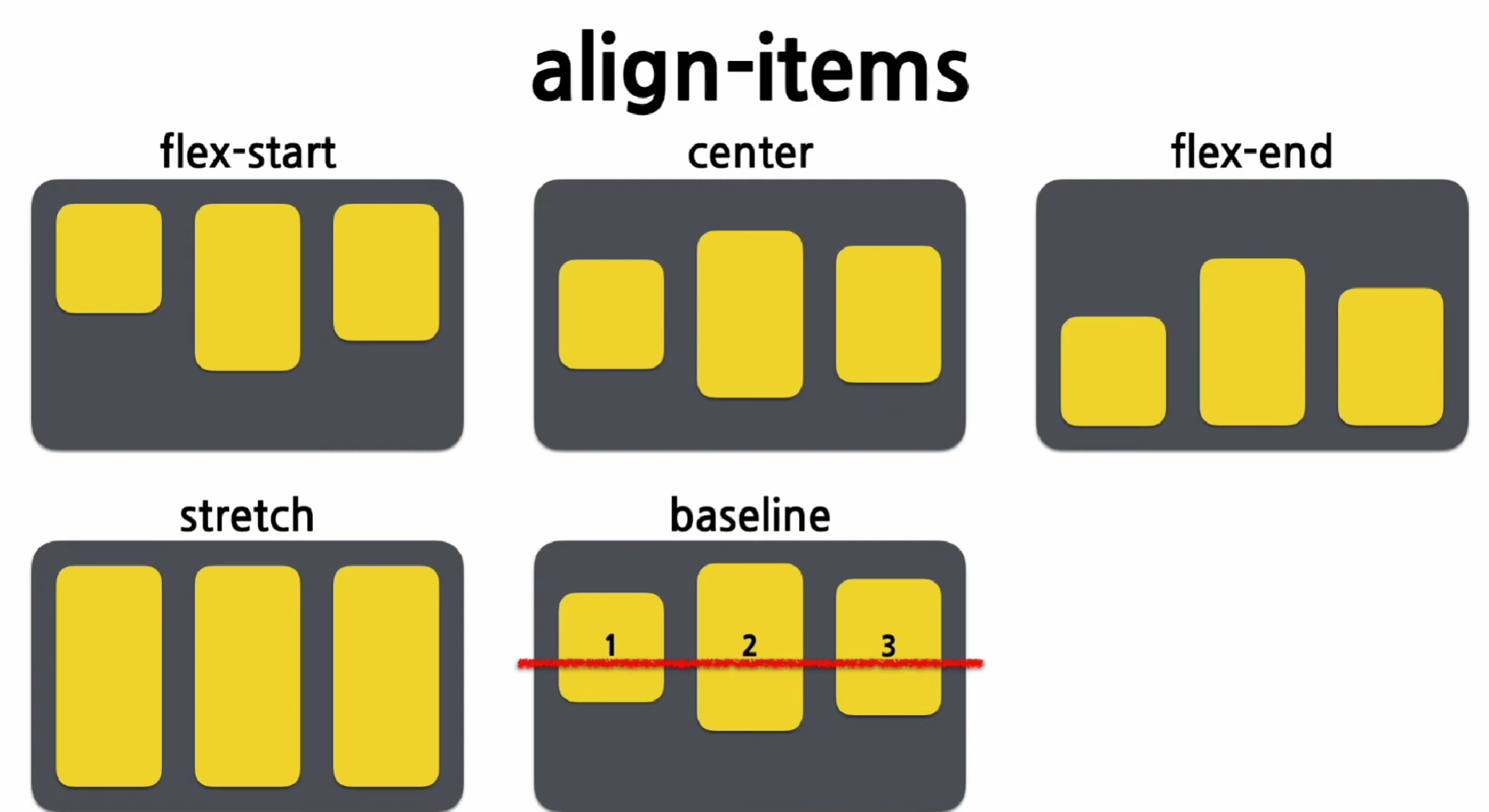 컨테이너 안에서 아이템을 어떻게 나란히 정렬할 것인지 결정하는 속성이다.