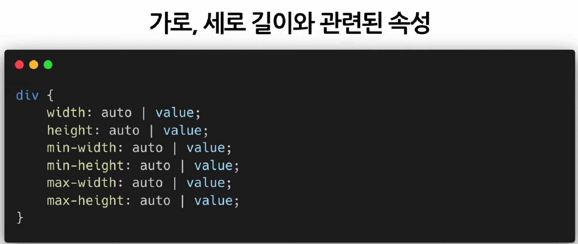 그다음으로는 가로와 세로 길이에 관한 속성이다.